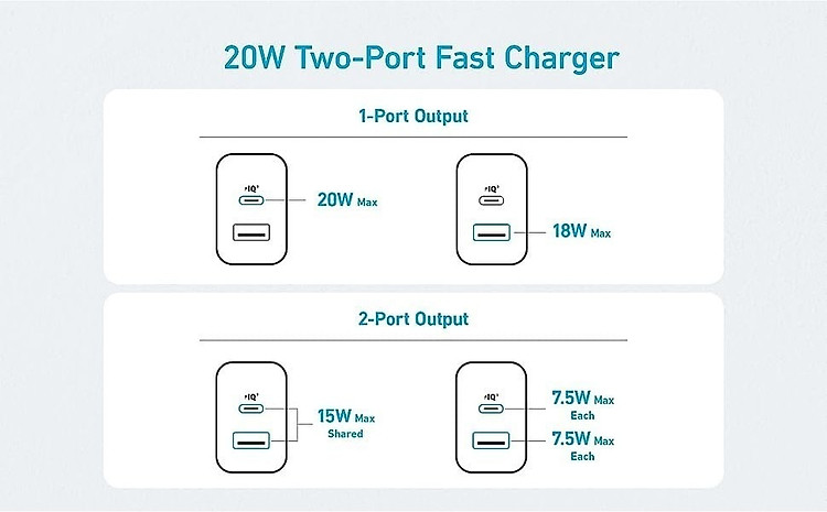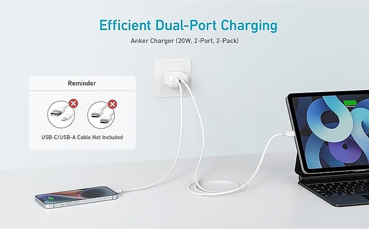 Với một cổng USB-C hỗ trợ Power Delivery (PD) và một cổng USB-A, củ sạc Anker B2348 cho phép bạn sạc đồng thời hai thiết bị khác nhau. Bạn có thể sạc nhanh iPhone hoặc các thiết bị USB-C khác qua cổng USB-C, và sạc các thiết bị cũ hơn hoặc các phụ kiện qua cổng USB-A.