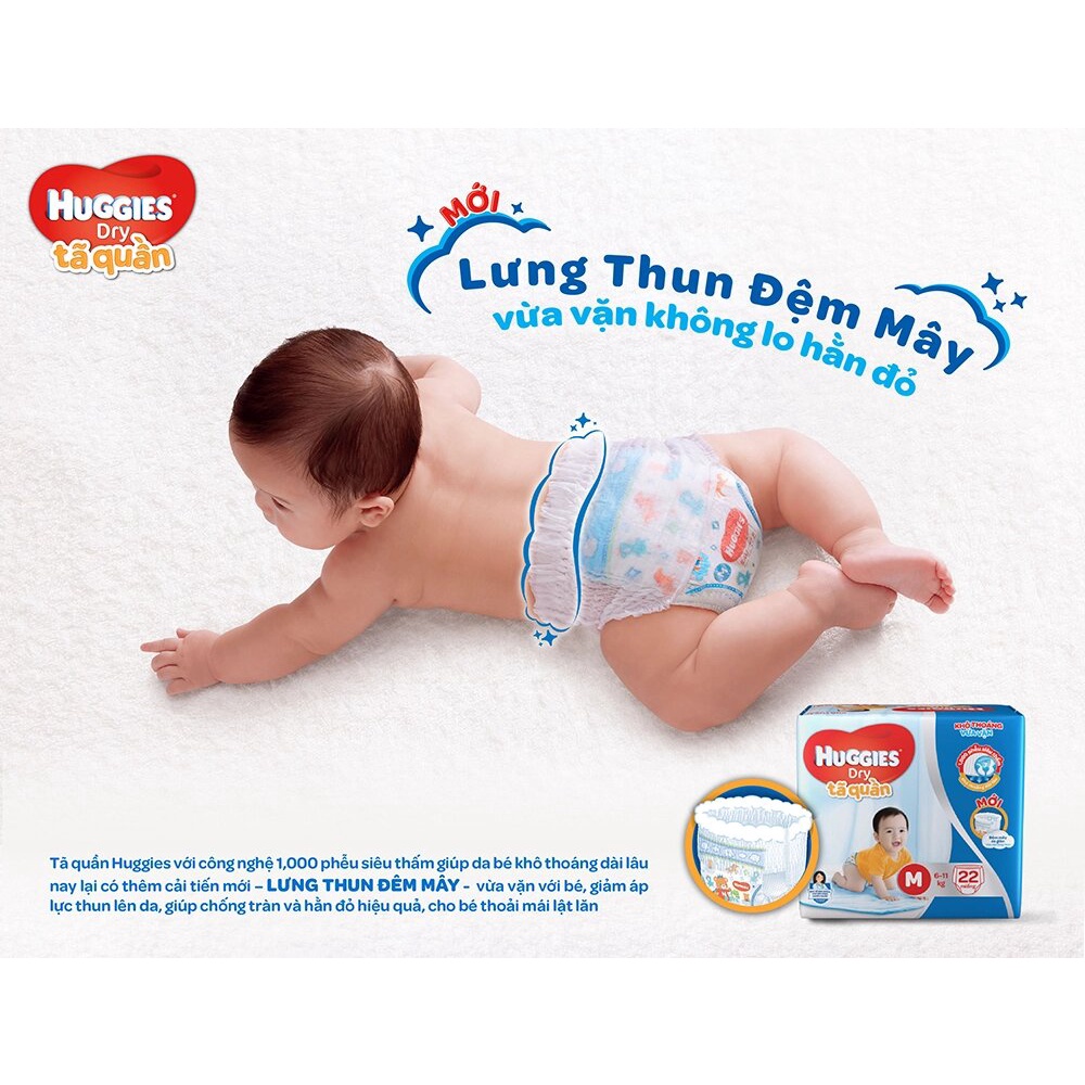Tã quần Huggies Đệm mây 4 chiều mới – với cải tiến lớp đệm siêu êm mềm ở 4 vị trí bụng, lưng và 2 bên đùi, êm mềm như mây, giúp giảm áp lực thun lên da chống hằn đỏ những vị trí tiếp xúc.