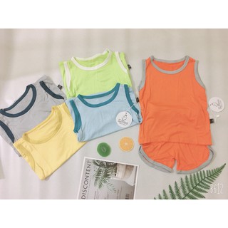 Bộ ba lỗ trơn kwoo thun lạnh loại 1 cho bé