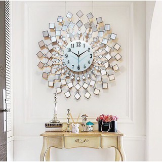 Đồng hồ treo tường trang trí cây tre, đồng xu, cánh hoa, hạt vuông