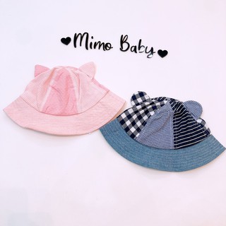 Mũ tai bèo tai gấu kẻ hồng, xanh cho bé (18-36m)