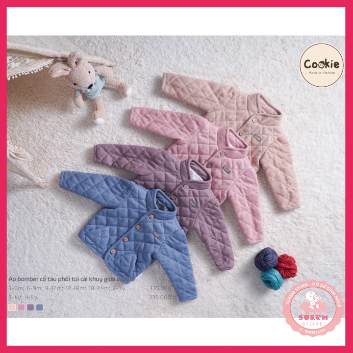 Giới thiệu [Cookie] Áo Khoác Bomber Cổ Tàu Phối Túi Cài Khuy Giữa Waffle Siêu Xinh