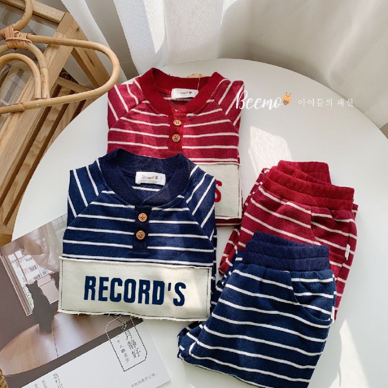 Giới thiệu Bộ cotton da cá dài tay hoạ tiết kẻ ngang cá tính
