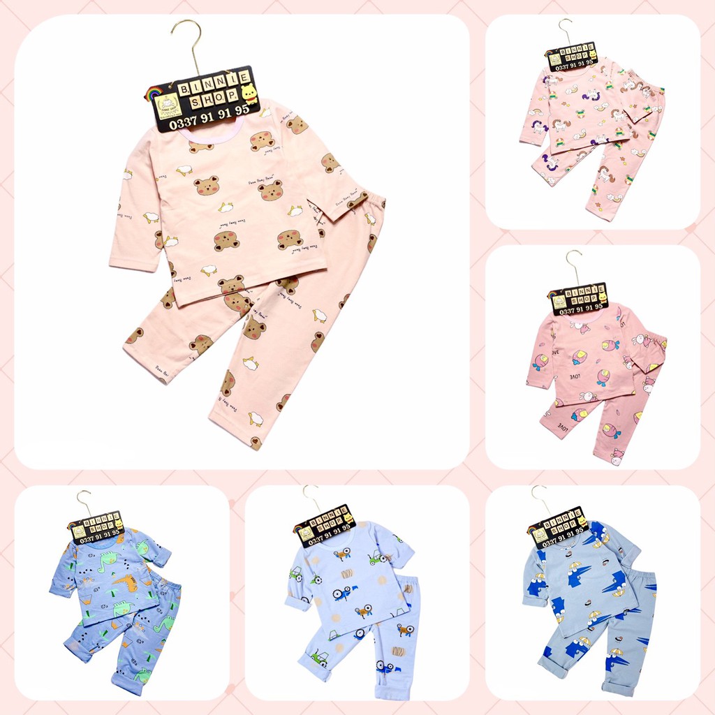 Bộ Cotton Dài Tay Họa Tiết Hoạt Hình Đáng Yêu Cho Bé size 80-130 (7~24kg) - Hàng Quảng Châu -B2021A