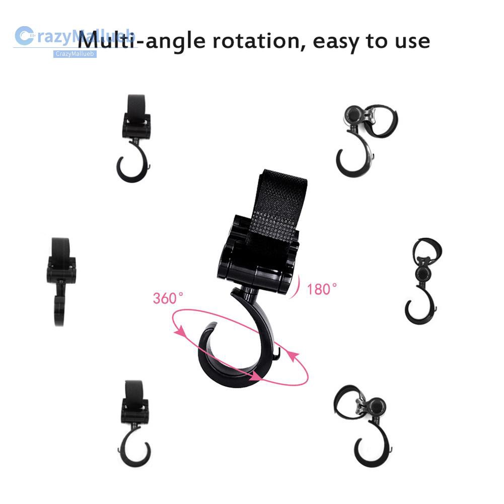 4pcs Multifunctional Baby Stroller Hooks 360 Degree Rotation Diaper Bag Hanger Grip Stroller Organizer Feature: 1. Made of high quality ABS material, durable. 2. Put your hands on the cart to keep the baby safe. 3. Carry diaper bags, purses, clothing and other items safely. 4. The hook can be rotated 360 degrees to hang the bag flexibly.
