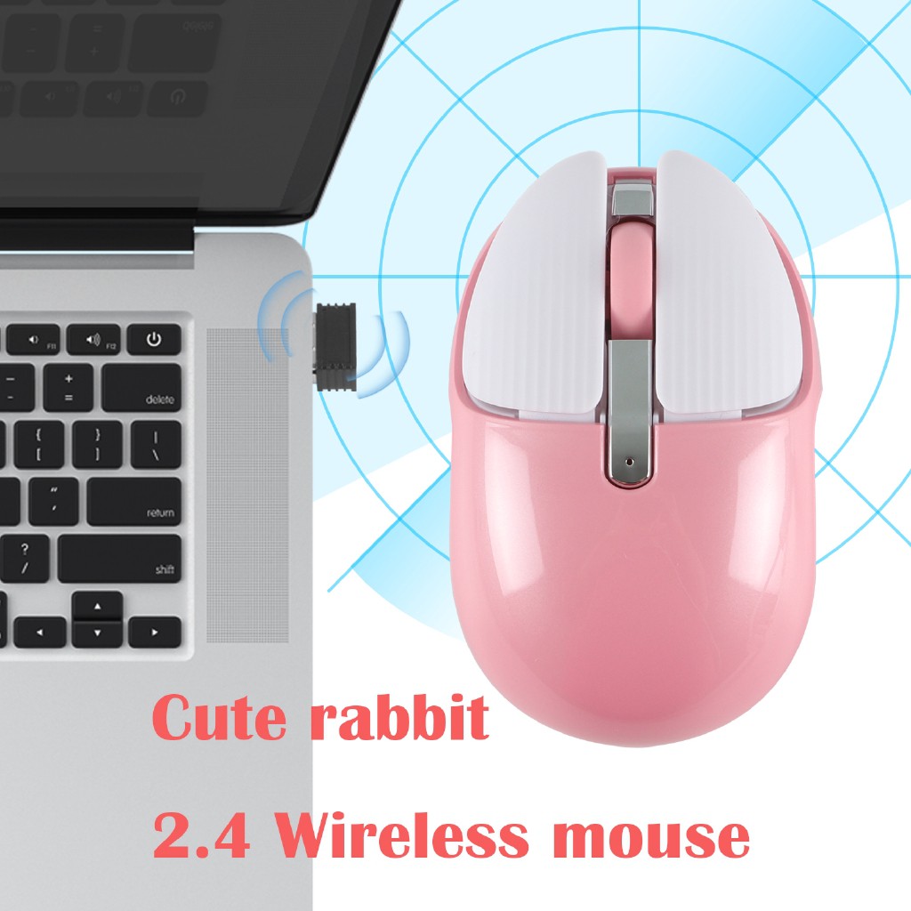 Features 1. Have a cute shape of a rabbit, a novel and unique shape 2. Wireless silent mouse, so that you will not affect other people's rest and work during office 3. Long use time, reducing the number of charging during use 4. No need to install plug-ins, just connect to usb to use