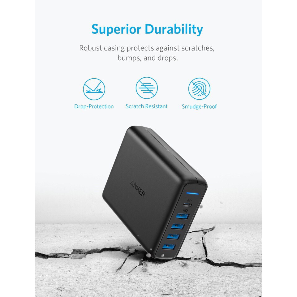 - Siêu mạnh mẽ: 01 cổng USB-C PD 30W và 04 cổng USB-A cho ra đồng thời 60W, đủ để sạc cùng lúc nhiều thiết bị (tối đa 5 thiết bị).