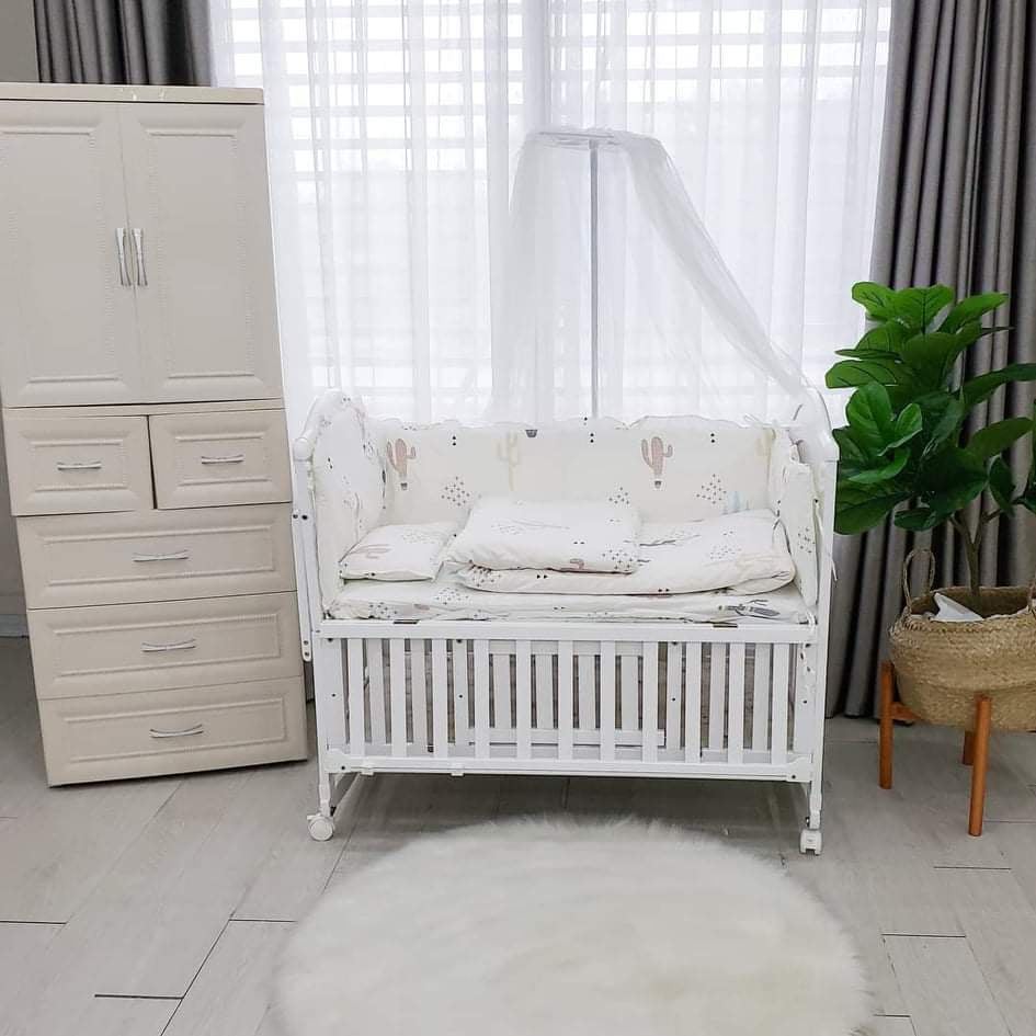 🔥Các chức năng chính: 🍑 Ghép giường: Hạ thành ghép liền giường ba mẹ 🍑 Nôi đưa: Đu đưa nhẹ nhàng giúp bé dễ chìm vào giấc ngủ ️🎯 ĐẶC BIỆT Cũi gỗ hạ thành có khay để vật dụng cho bé. 😍 Cũi gỗ đa năng cực đẹp lại bền dùng được lâu. Mẹ nhận hàng chỉ có hài lòng tuyệt đối thôi ạ!
