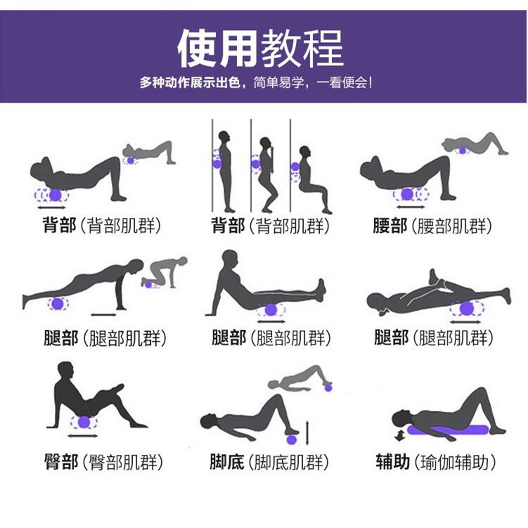 Features: 1. This Yoga Pilates Fitness Exercise Muscle Massage Therapy Foam Roller Body Roller is a simple and practical Massage tool, which is mainly made of durable hard PVC pipe and soft EVA foam materials to effectively cushion and avoid sports injuries, and can be used for Massage or Yoga/ Pilates or your regular Gym exercises. 2. The roller not only helps in healing of muscle tissue injuries but also improves blood circulation. 3. Deep Massage to relieve soreness. Relieve back pain, relax calf muscles, promote thigh muscle recovery, relieve lumbar muscle strain. 4. Say goodbye to muscular legs, beautify the curve of the legs, deep muscle Massage, prevent the thighs from becoming thick after exercise. 5. 3D floating point, deep Massage. Refine the Massage particles, reach the deep fascia, relieve muscle soreness. 6. Perfect for Pilates, bodybuilding, weight training, Yoga, fitness exercises, physiotherapy and rehabilitation.