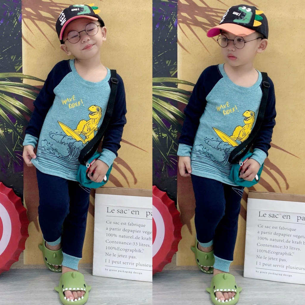 Thời trang trẻ em & trẻ sơ sinh > Quần áo bé trai > Com lê & đồ bộ || Đồ Bộ Dài Tay Bé Trai 10kg-25kg Chất Thun Cotton Co Giãn Mềm Mát Hình Khủng Long-Bộ Thu Đông Bé Trai