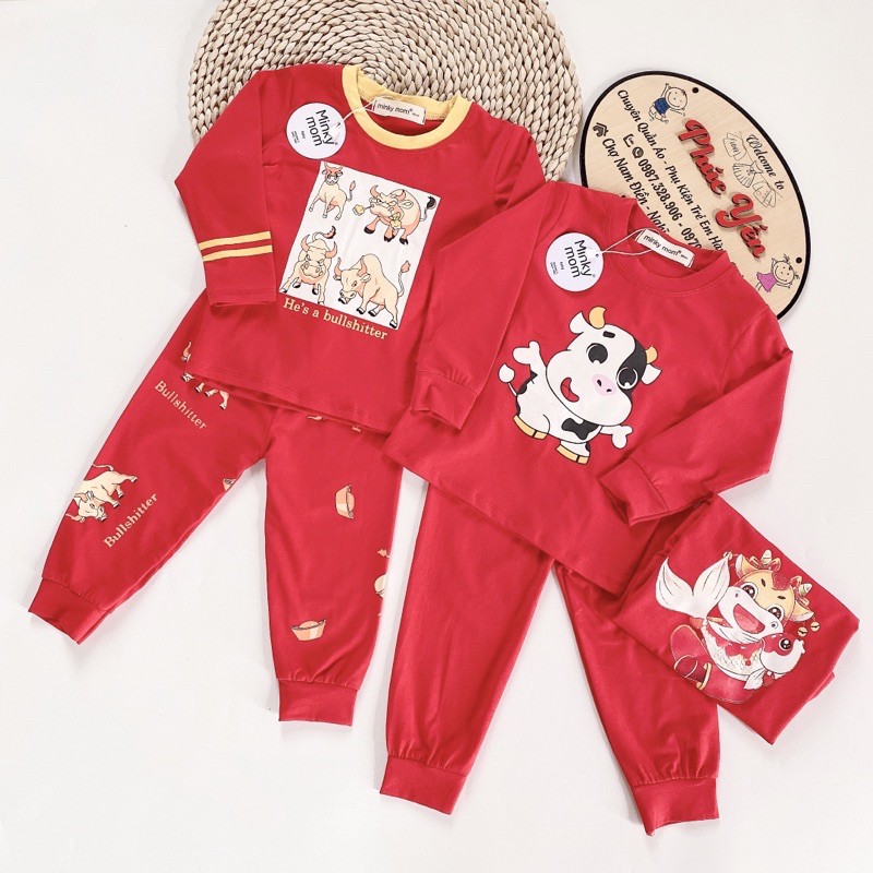 Tên sản phẩm: Bộ Tết ! Bộ Dài Tay Cotton 100 % Hàng Minky Mom Họa Tiết Trâu Năm 2021 Cực Đẹp Cho Bé (8-18kg)(SP001411 )