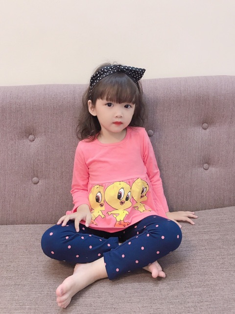 Thời trang trẻ em & trẻ sơ sinh > Quần áo bé gái > Com lê & đồ bộ || {10-20kg} Bộ dài tay bé gái chất cotton đẹp kiểu babydoll - M958