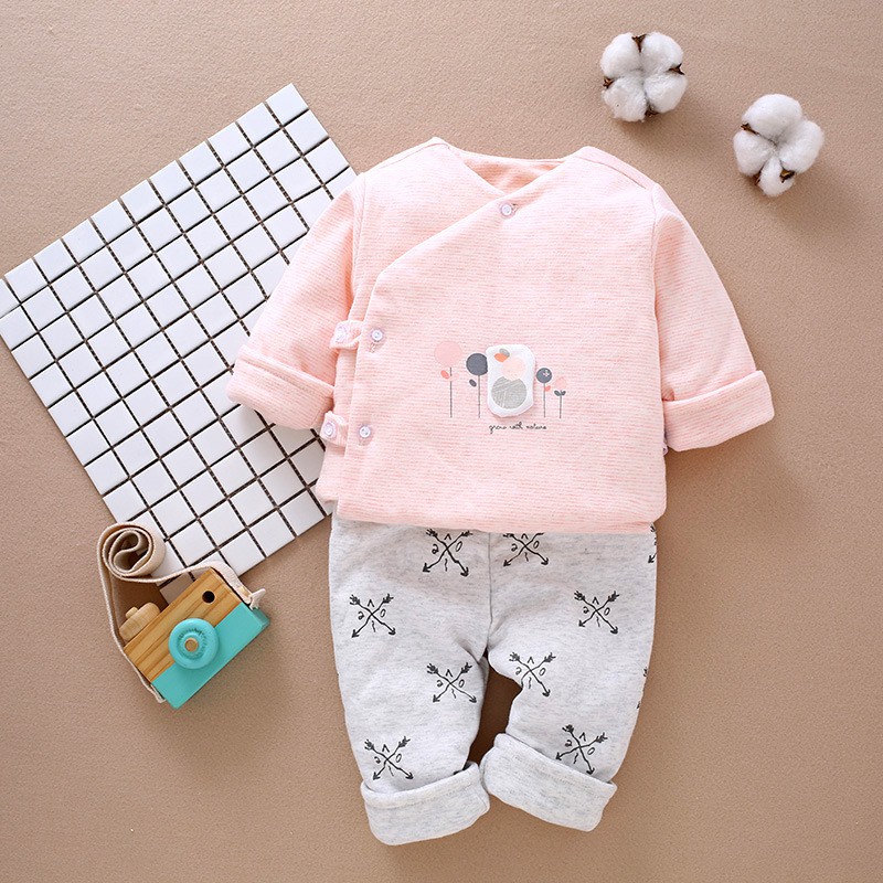 Giới thiệu Bộ dài tay cotton trần bông cho bé sơ sinh 3-9kg, hàng đẹp xuất Hàn - BO36