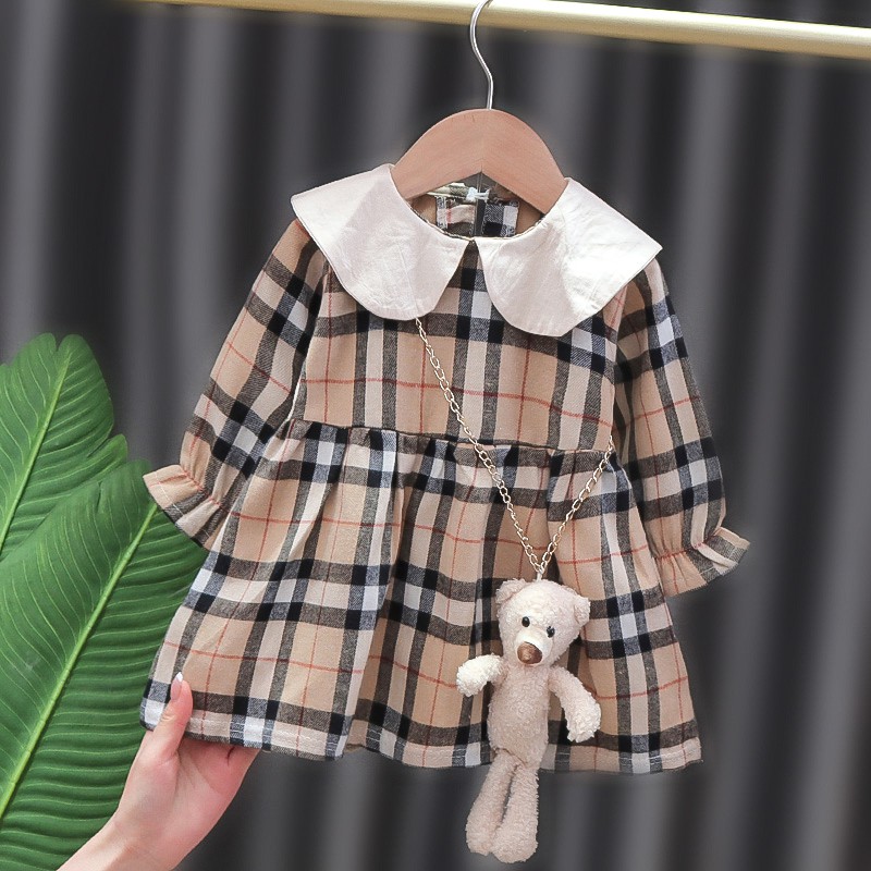Giới thiệu Đầm Công Chúa Cổ Búp Bê Họa Tiết Sọc Caro Phong Cách Hàn Quốc Cho Bé Gái