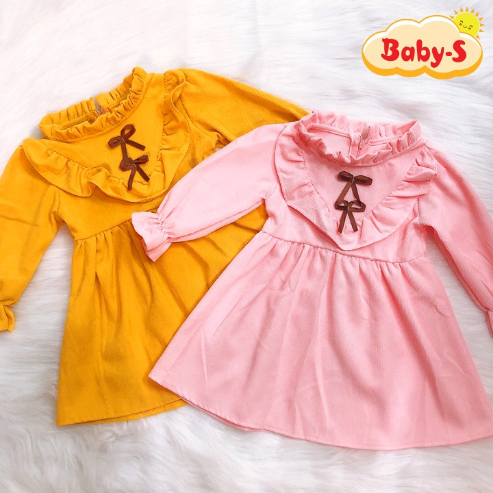 Giới thiệu Đầm công chúa dài tay chất nhung tăm mềm mịn cho bé 1-7 tuổi phối bèo và nơ xinh xắn ở ngực hottrend Baby-S – SD068