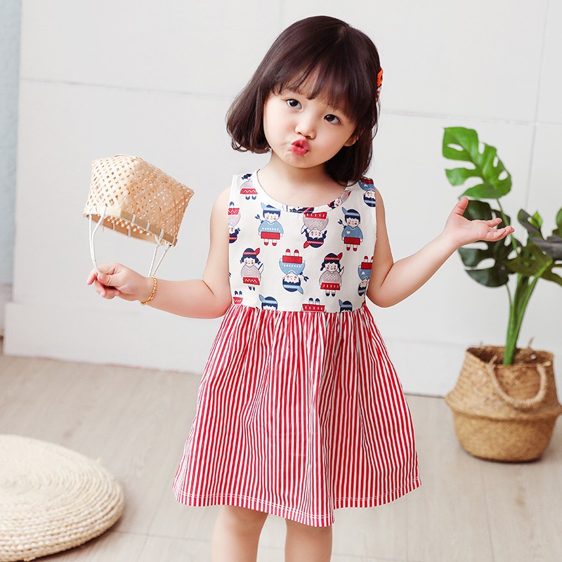Giới thiệu Đầm Công Chúa Không Tay In Hoa 100% Cotton Phong Cách Hàn Quốc Cho Bé 1-6 Tuổi