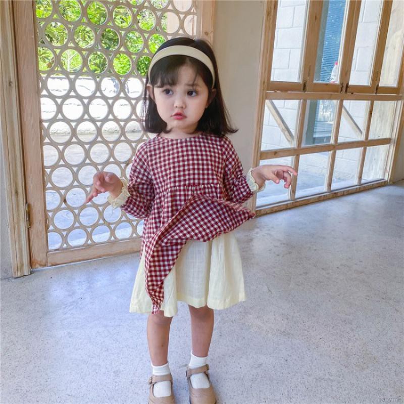 Giới thiệu Đầm Dài Tay Giả Hai Lớp Họa Tiết Ca Rô Cho Bé