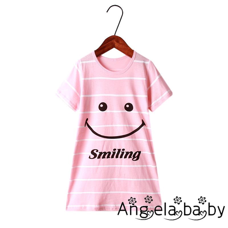 Little Girls Summer Cozy Casual Pajama Big Smile Pattern Letter Print T-Shirt Dress Sleepwear