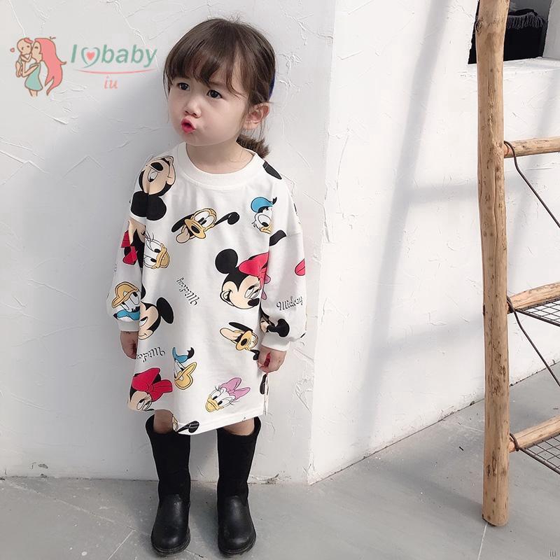 Thời Trang Trẻ Em > Bé gái | 3 tháng-4 tuổi > Váy đầm || Đầm tay dài in hình chuột Mickey