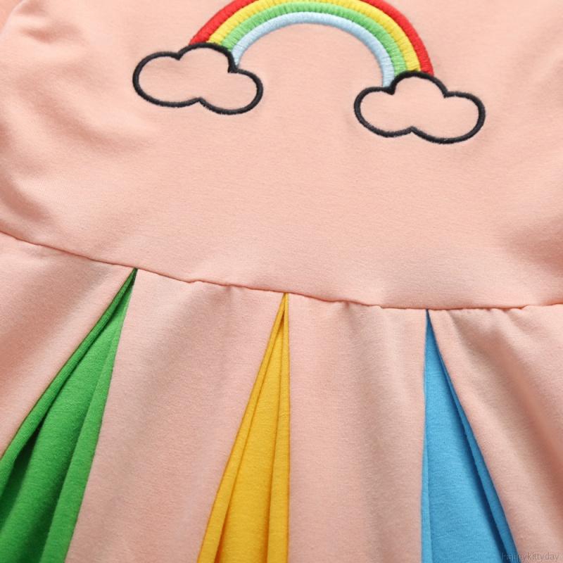 Đầm Tay Dài Sọc Cầu Vồng Cho Bé Gái