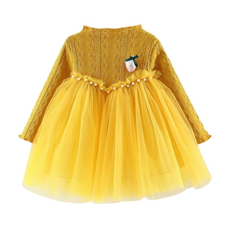 Giới thiệu Đầm tay dài xòe eo đính hạt ngọc đáng yêu dành cho bé