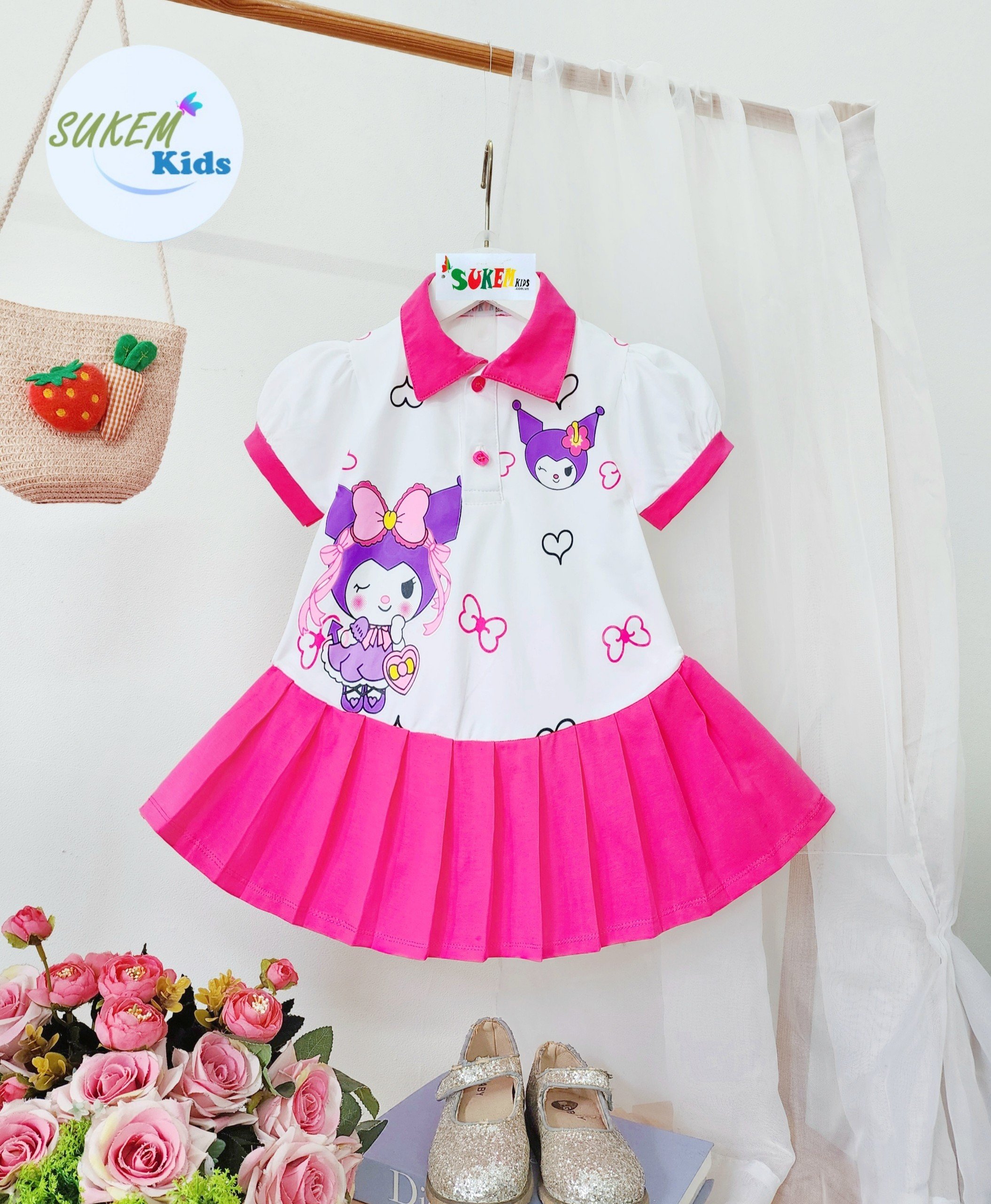 Đầm thiết kế cổ trụ in Kuromi siêu xinh . Tùng váy xếp ly xịn sò