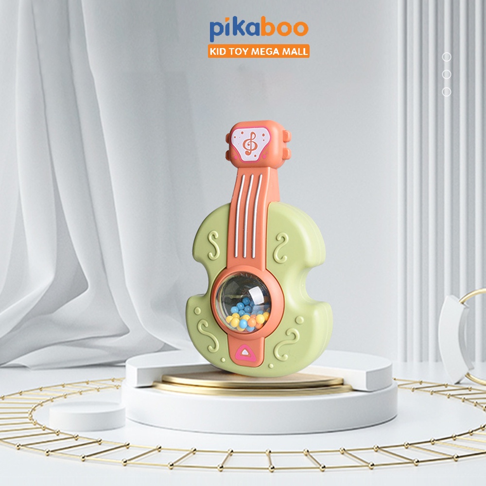 Giới thiệu Đàn guitar lục lạc Pikaboo làm bằng chất liệu nhựa cao cấp an toàn với 4 màu hiện đại đồ chơi xúc xắc hạt màu sinh động