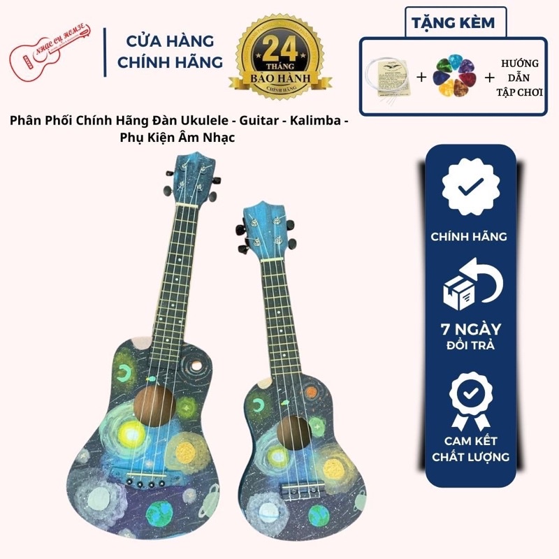 THÔNG TIN SẢN PHẨM Size : 21inch Soprano = 53cm 23inch concert = 60 cm Gỗ : gỗ ván ép Linden , 6 nan đàn nên rất cứng cáp Khoá thép chống rỉ , chốt khoá nhôm chắc chắn Âm vang , ngân Dây : bộ aquila trơn nên mềm và dễ bấm