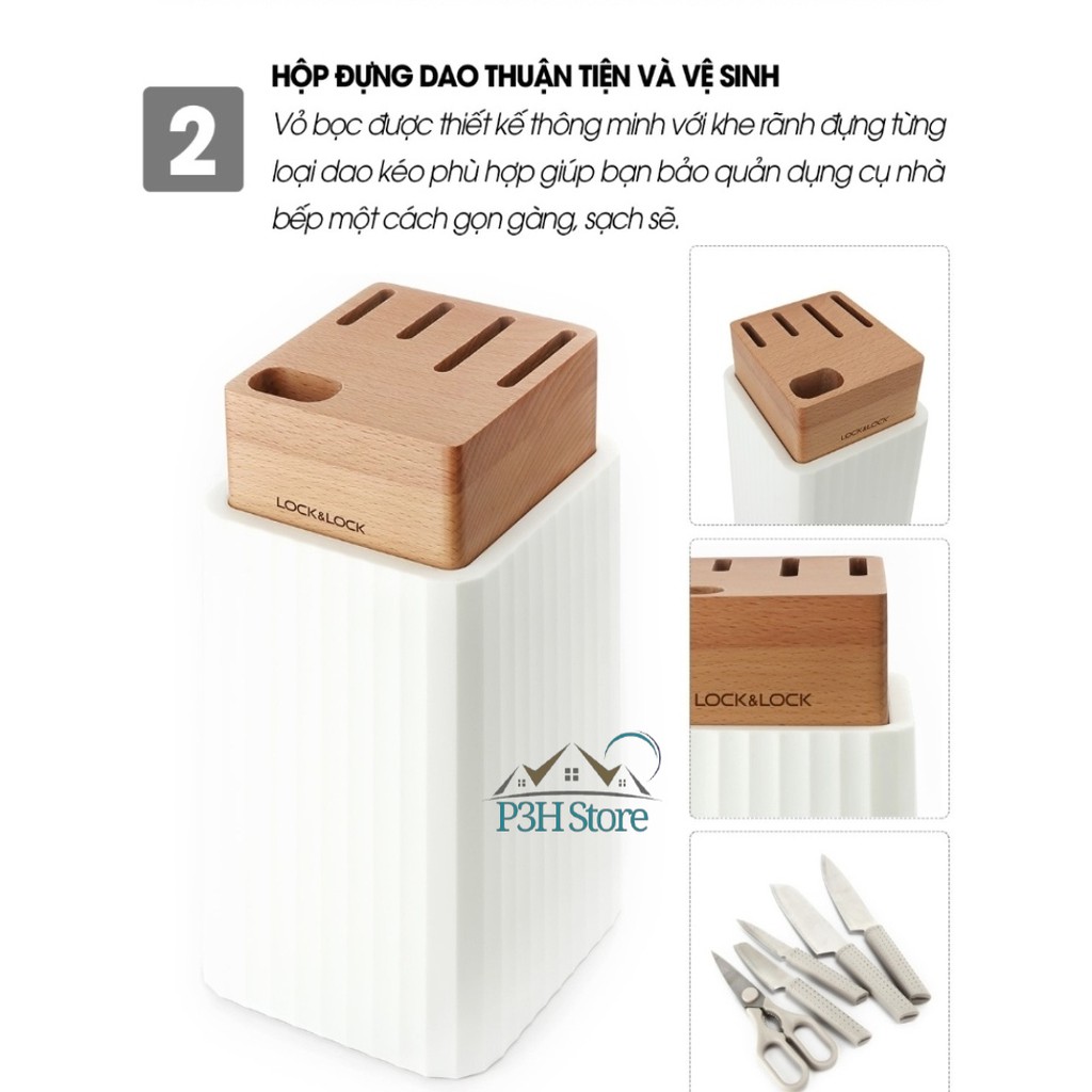Giới thiệu Bộ dao 6 món Lock&Lock CKK802 (4 dao, 1 kéo, 1 hộp đựng dao) màu trắng