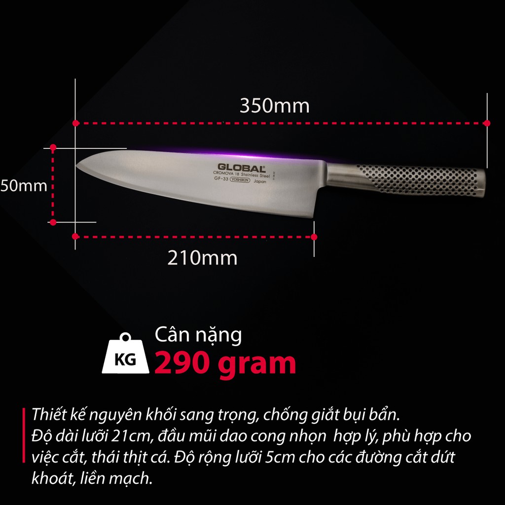 Giới thiệu Dao bếp Nhật cao cấp Global GF33 Chef - Dao thái thịt cá (210mm)