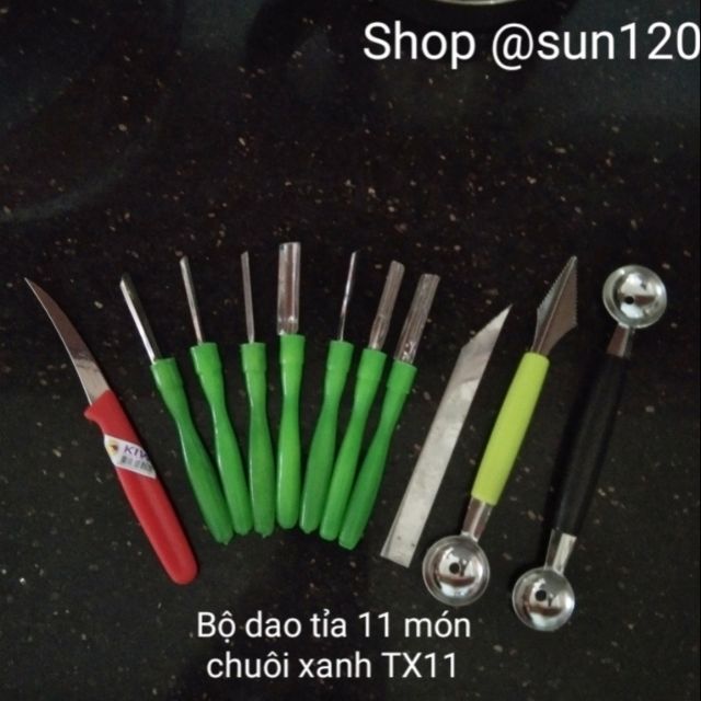 Bộ dao tỉa hoa quả 11 món TX11 chuôi xanh