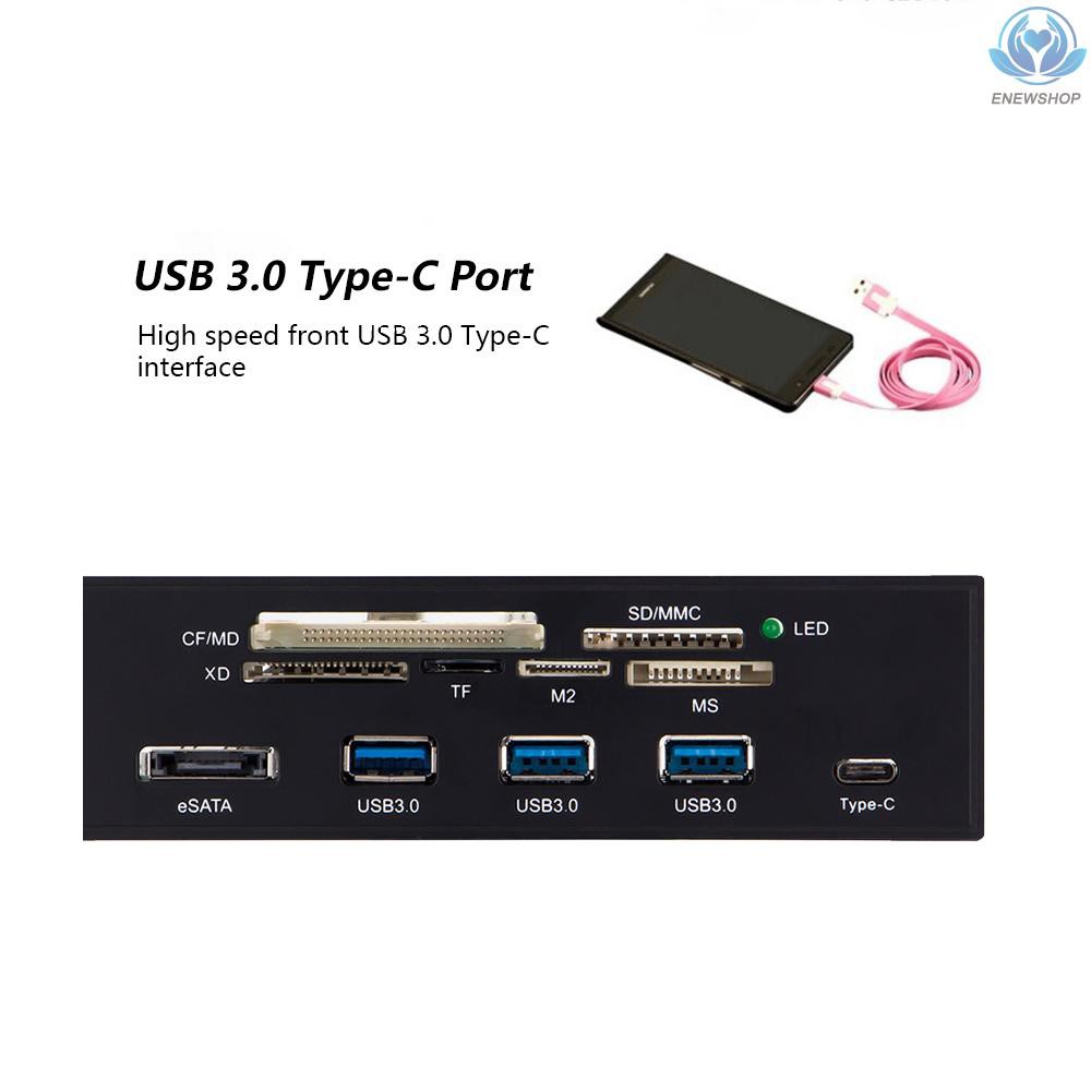 Welcome to enewshop.Sunshine-tipway STW 5.25" Internal Card Reader Media Multi-Function Dashboard PC Front Panel Type-C USB 3.1 USB 3.0 Support CF MD XD MMC TF M2 MS This is a multi-functional card reader that Features three USB 3.0 ports, one type-c port, 6 card slots. It supports CF MD XD MMC TF M2 MS and many more formats, and let you transfer files between your flash media and computer easily and quickly. Users can transfer files easily and quickly with high speed USB 3.0/Type-C interface. It can be easily mounted into 5.25" drive bay of your computer case for added card reading capabilities.