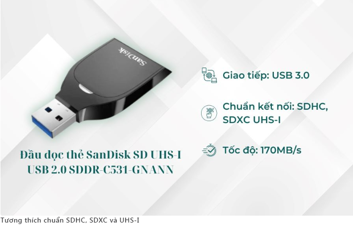 Với tốc độ vượt trội, thiết kế di động và khả năng tương thích linh hoạt, đầu đọc thẻ SanDisk SD UHS-I SDDR-C531-GNANN không chỉ là một phụ kiện, mà là một công cụ mạnh mẽ giúp bạn làm việc hiệu quả hơn mỗi ngày. Nếu bạn cần một thiết bị nhỏ nhưng có “võ”, đừng bỏ lỡ sản phẩm này!