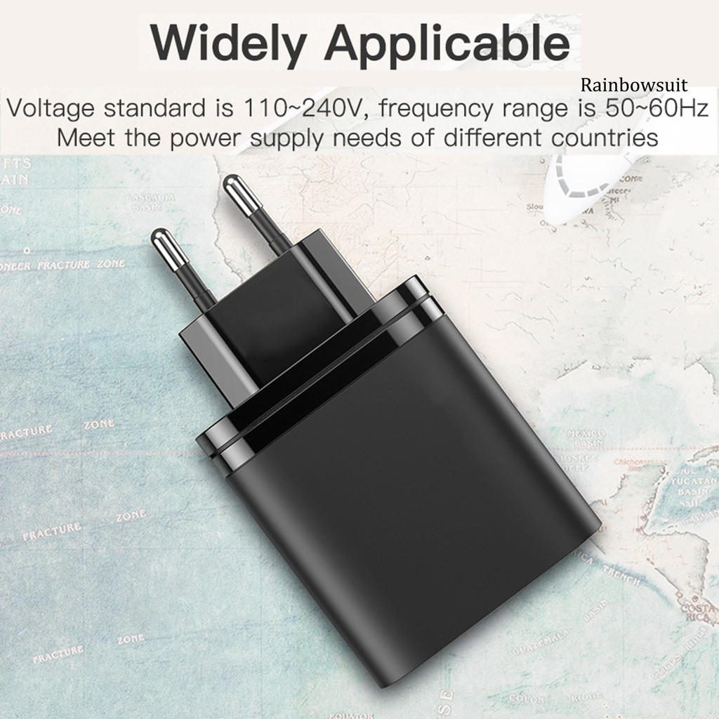 Specifications: 30W QC3.0 adapter can meet your fast charging demand. The powerful chip makes charging conversion more efficient and doesnt hurt the phone. With digital display, the charger is more safe and convenient. Compact Design with 220V Input, which makes it easy to carry and stores in backpack or suitcase for travel. 3 Ports charger can compatible with all kinds of smart phone, tablets and laptops of Android, IOS and Windows.