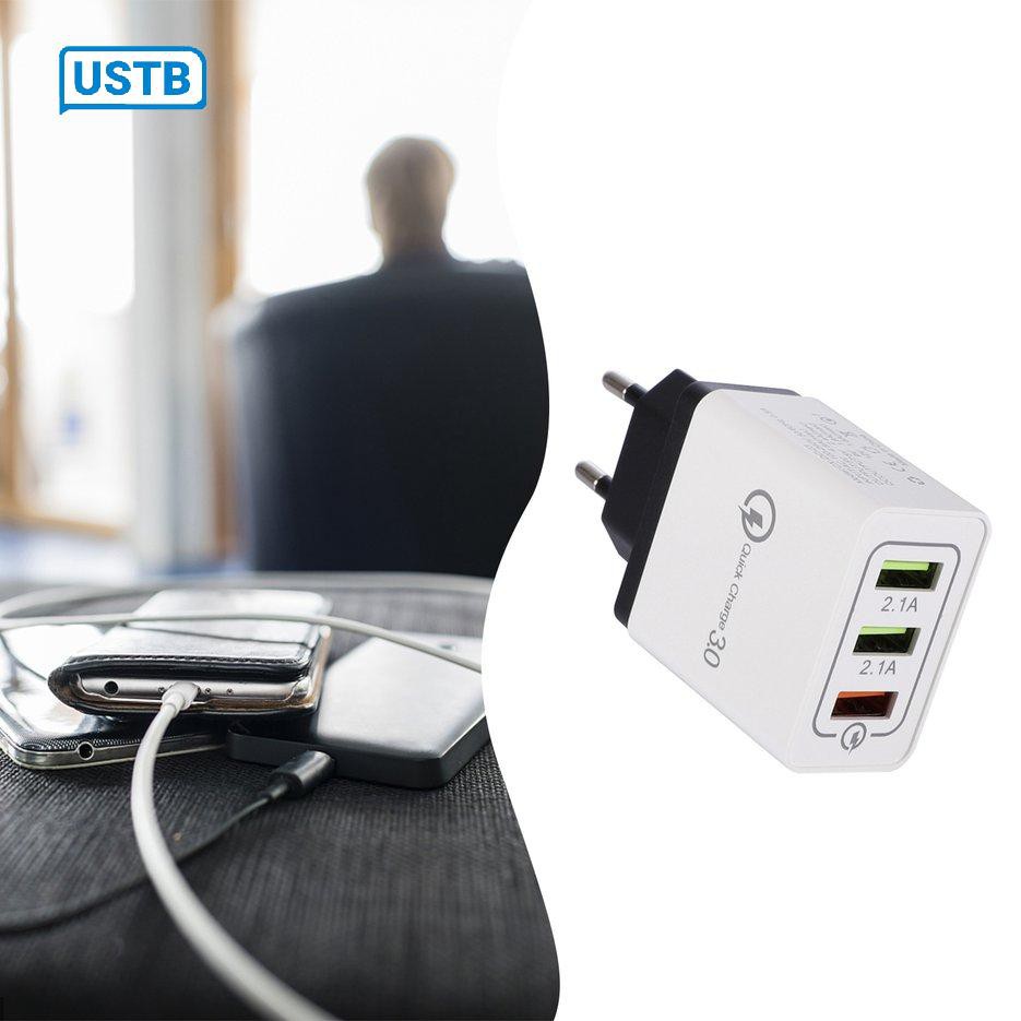 Multi Interface 5V 9V 12V Smart Phone Charger Head Fast Charging Charger Head Features: 1. 3USB + QC3.0: 3 holes, can charge three mobile phones at the same time, saving time and more convenient. 2. Elegant and durable: made of ABS material, small size, light weight, compact, durable and texture, very suitable for use when traveling. 3. Multiple protection: The built-in smart chip can effectively protect the device from damage during charging. 4. Widely compatible: AC100-240v broadband voltage, suitable for any mobile phone model.