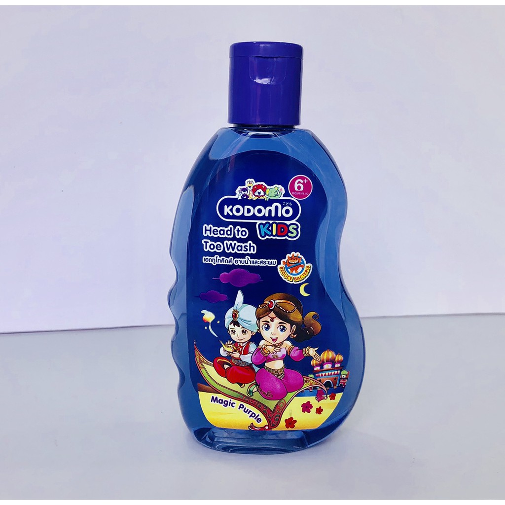 Dầu tắm gội Kodomo Magic Purple 200ml Công dụng: Dầu Tắm Gội Kodomo Magic Purple, Chiết xuất từ tinh dầu hạt nho giúp ngăn ngừa vi khuẩn kết hợp công thức dưỡng ẩm và pH cân bằng độ ẩm cho da với hương thơm tươi mát bền lâu cho trẻ thơm mát suốt ngày dài năng động. Cách dùng: Lấy 1 lượng vừa đủ xoa lên tóc, Massage nhẹ nhàng xung quanhđầu bé. Tiếp tục lấy 1 lượng sữa tắm vừa đủ thoa lên người bé để tạo bọt rồi tắm lại bằng nước sạch. Sản phẩm thích hợp cho trẻ 6 tuổi trở lên. Thành phần: Water, Lauryl Glucoside, Sodium laureth sulfate, Cocamido-propyl betaine, Glycerin, Fragrance, Polyquaternium-47, Sodium Chloride, Citric acid, Disodium EDTA, Tocopheryl acetate, Pyrus Malus(Apple) Fruit Extract, Methylchloroisothiazolinone, Methylisothiazolinone. Không gây kích ứng da. An toàn cho làn da nhạy cảm. Không để sản phẩm dính vào mắt, tránh xa tầm tay trẻ em. Chú ý: Sản Phẩm dành cho trẻ em từ 6 tuổi trở lên. Điều kiện bảo quản: Bảo quản ở nhiệt độ thường, tránh ánh sáng trực tiếp. Hạn dùng: 03 năm kể từ ngày sản xuất in trên thân chai, 06 số đầu là ngày sản xuất; 05 số kế là số lô; 04 số cuối là giờ sản xuất. Thể tích thực: 200ml. Sản xuất tại Thái Lan. Phiếu công bố mỹ phẩm số: 116955/15/CBMP-QLD Nhà sản xuất: Lion Corporation (Thailand) Limited, 666 Rama 3rd, Yannawa, Bangkok 10120, Thailand.