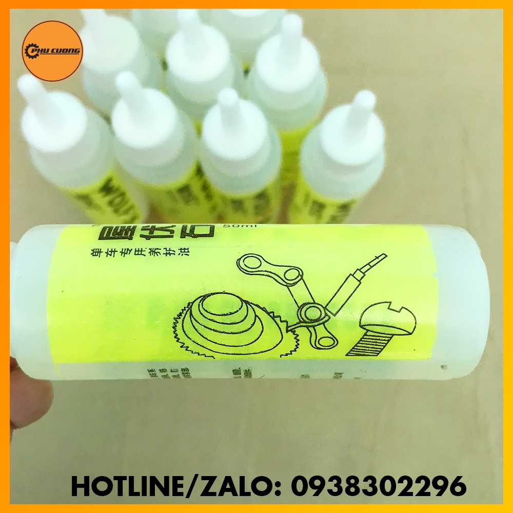 Dầu tra sên, xích, líp xe đạp Wolf's - Dung tích 50ml - Bôi trơn, bảo dưỡng xích, líp, trục, ốc - Ngăn chặn rỉ sét và sự bào mòn, sự oxi hóa - Dầu xích xe đạp thể thao giúp tra dầu rửa xích bôi trơn bộ chuyển động. Giúp chăm sóc xe đạp thể thao của bạn một cách tốt nhất. Bộ dầu xích xe đạp thể thao Wolf là sản phẩm không thể thiếu cho ai đam mê và quý trọng chiếc xe của mình. - Dầu tra xích, dầu tra sên, dầu tra vòng bi, dầu tra bạc đạn, dầu bôi trơn xe đạp đua chuyên dụng Wolf 50 ml - Đầu vòi có nắp đậy rất kín, tránh việc dầu chảy ra ngoài - Dầu có thể sử dụng bôi trơn xích, vòng bi giữa, vòng bi trục trước, vòng bi trục sau và tay lái, bộ đề và dây phanh, có tác dụng chống rỉ và chống mài mòn, tăng tuổi thọ của phụ tùng