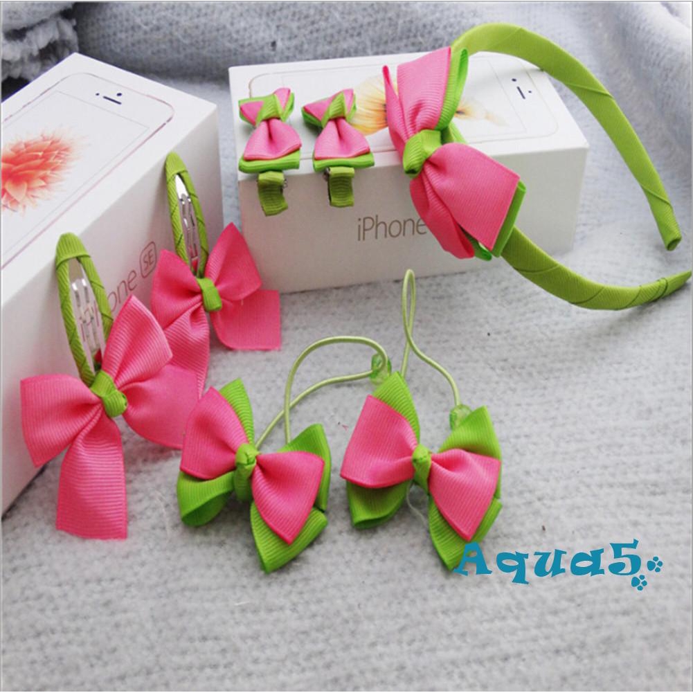 7pcs Headwear Set Children Accessories Printing Dot Bow Headband Hair clip Gum for Hair Hairband for Girls Barrette