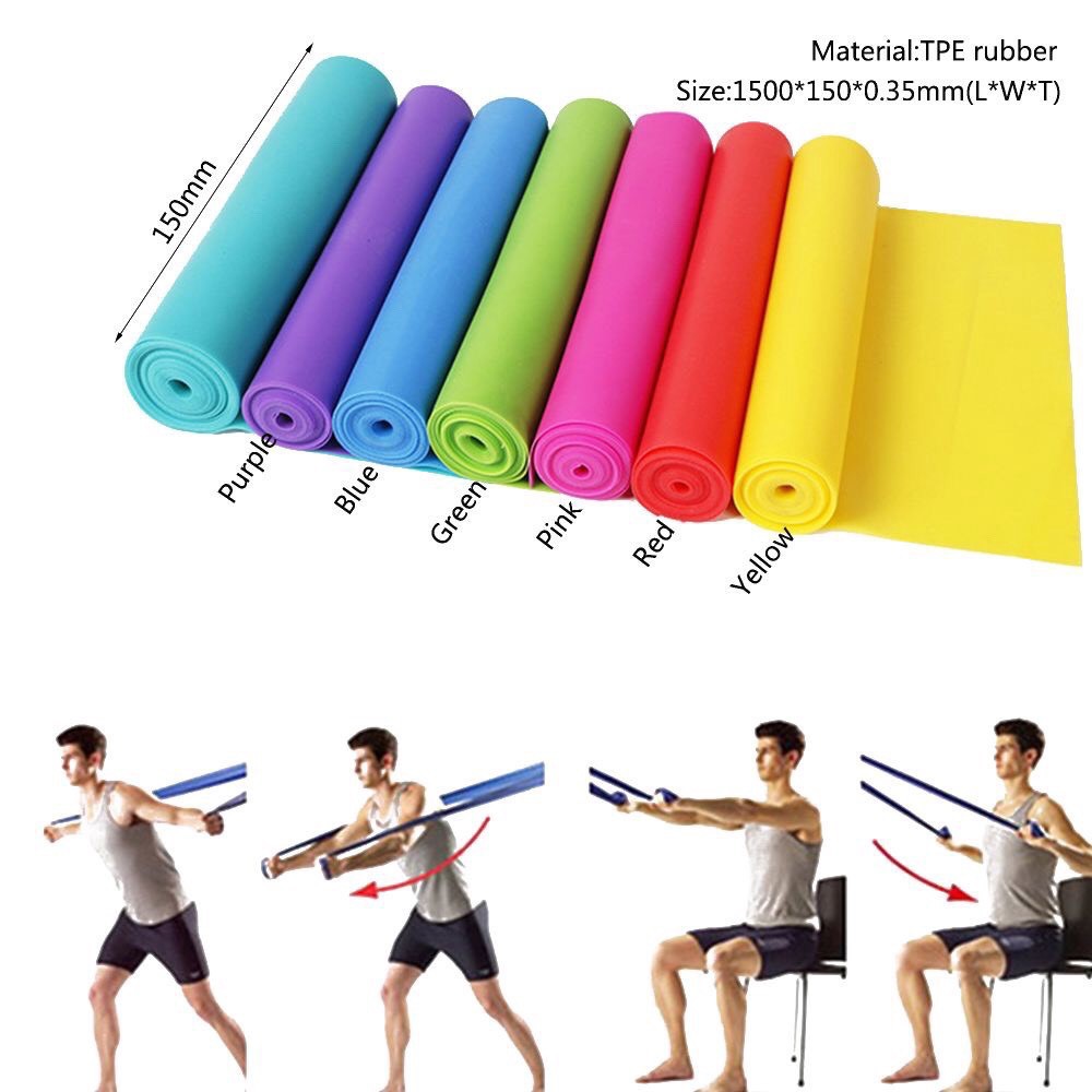 - Giới thiệu sản phẩm Dây bản thun tập thể lực - Thông tin của dây bản thun tập thể lực - Kích thước: 1500×150×0.35mm - Màu sắc: có 5 màu: hồng, xanh lá cây, xanh da trời, vàng, tím - Chất liệu: Cao su cao cấp, không độc hại - Đặc điểm nổi bật của dây thun tập thể lực - Giúp điều chỉnh mức đàn hồi chính xác đến mức cơ bắp mong muốn - Các bài tập kháng lực với dây đàn hồi giúp tăng sự mạnh mẽ của cơ bắp.Các mức kháng cự thường được thể hiện qua màu sắc khác nhau, làm cho nó dễ dàng để xác định mức độ chính xác của sức kháng lực với nhiều bài tập thể dục của bạn.Cũng gần giống như với tạ nhưng việc cất trữ hay mang đi cũng dễ dàng hơn nhiều. - Tập luyện thường xuyên với dây bản thun sẽ cho bạn hệ cơ phát triển, tăng cường khả năng chịu đựng cho cơ tay, cơ vai, cơ chân. - Sử dung trong phòng gym, tập thể lực tại nhà, kết hợp tập yoga, Tập phục hồi chức năng hoặc vật lý trị liệu - Chất liệu cao su đàn hồi cao, bảo vệ môi trường, tiêu chuẩn châu Âu, có thể được kéo dài hơn 6 lần nhanh hồi phục, không biến dạng, không độc hại.