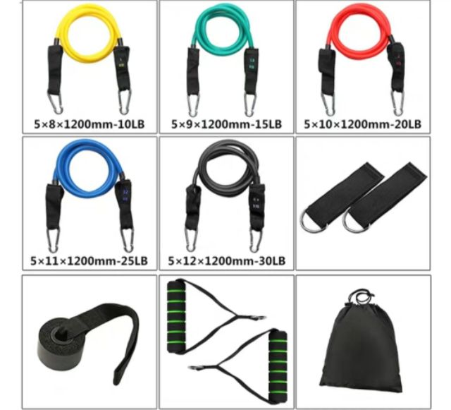 BỘ DỤNG CỤ 11 MÓN DÂY CAO SU ĐÀN HỒI KHÁNG LỰC TẬP GYM THỂ HÌNH TẠI NHÀ DÀNH CHO CẢ NAM VÀ NỮ Dây cao su đàn hồi kháng lực tập gym thể hình tại nhà cho nam giới là sản phẩm không thể thiếu để sở hữu 1 thân hình hoàn hảo. Bạn không có thời gian đến phòng Gym. Bạn không có nhiều kinh phí mua những máy tập đắt tiền Bạn không có không gian cho những máy tập cồng kềnh Bạn đã quá chán nản với những bài hít đất, kéo xà thông thường. Vậy hãy mua dây cao su đàn hồi kháng lực tập gym thể hình tại nhà cho nam.