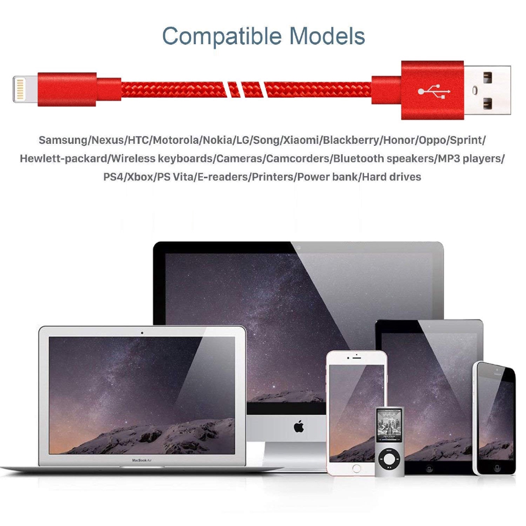 Khả năng tương thích Nếu iPhone / iPad của bạn có đầu nối Lightning thì hãy yên tâm rằng các loại cáp này sẽ phù hợp với tất cả bất kể kiểu máy nào.