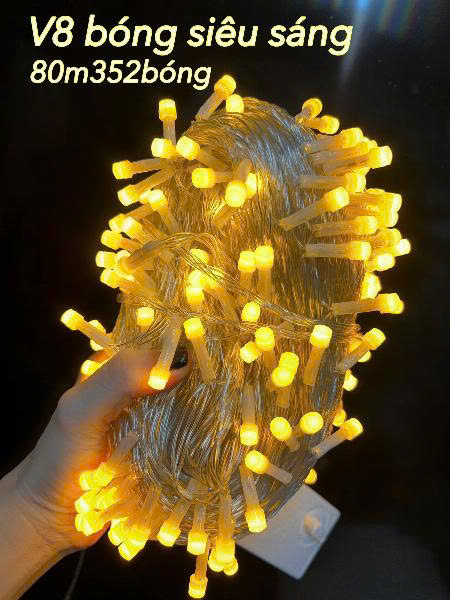 Đèn led trang trí chớp màu vàng Kiểu bóng: v8 Dài 80m - 352 bóng Màu vàng