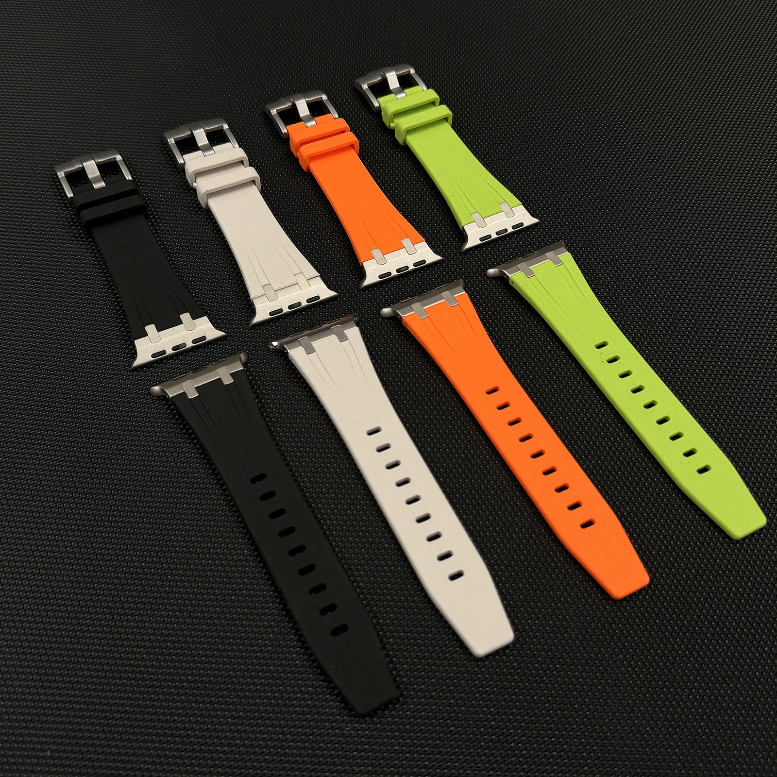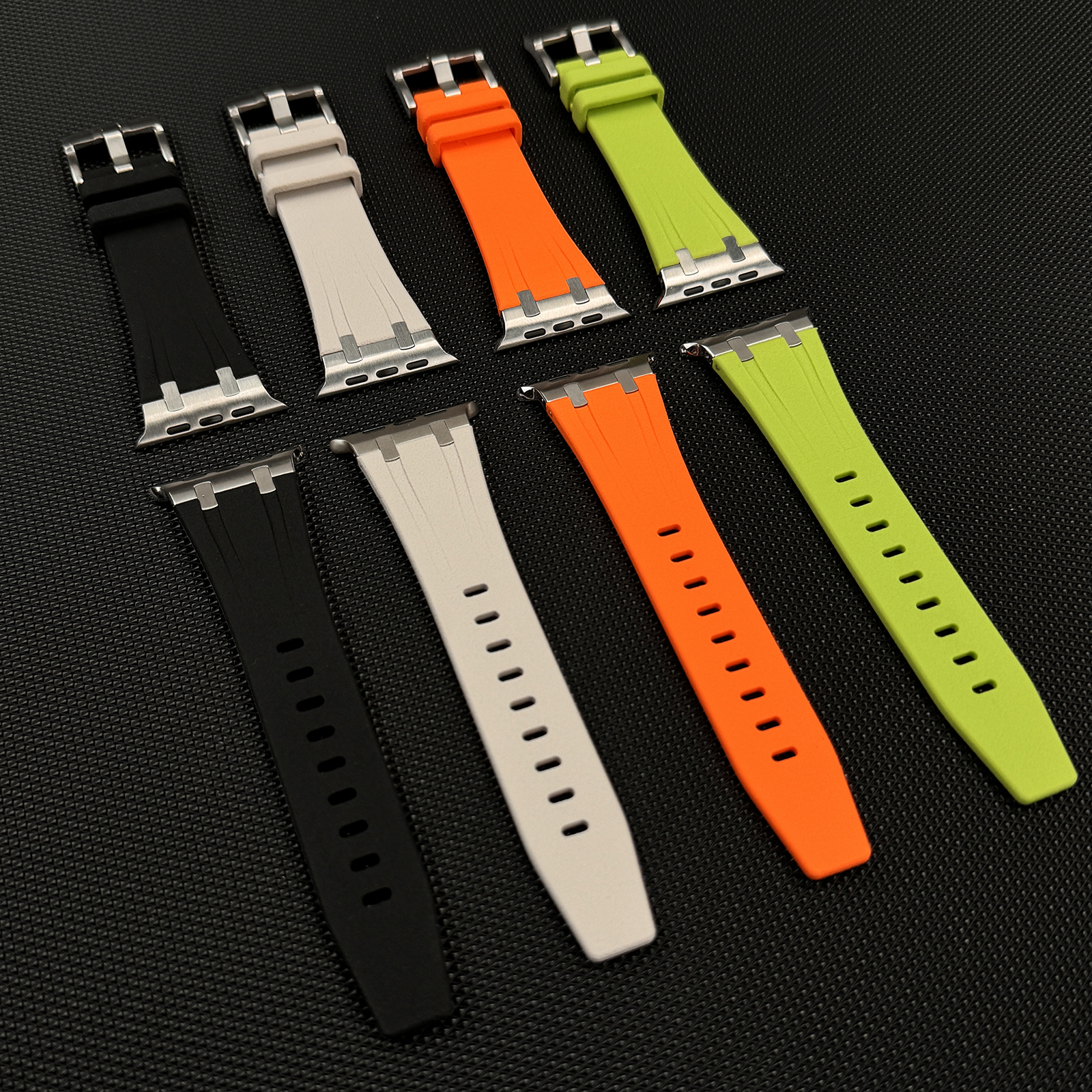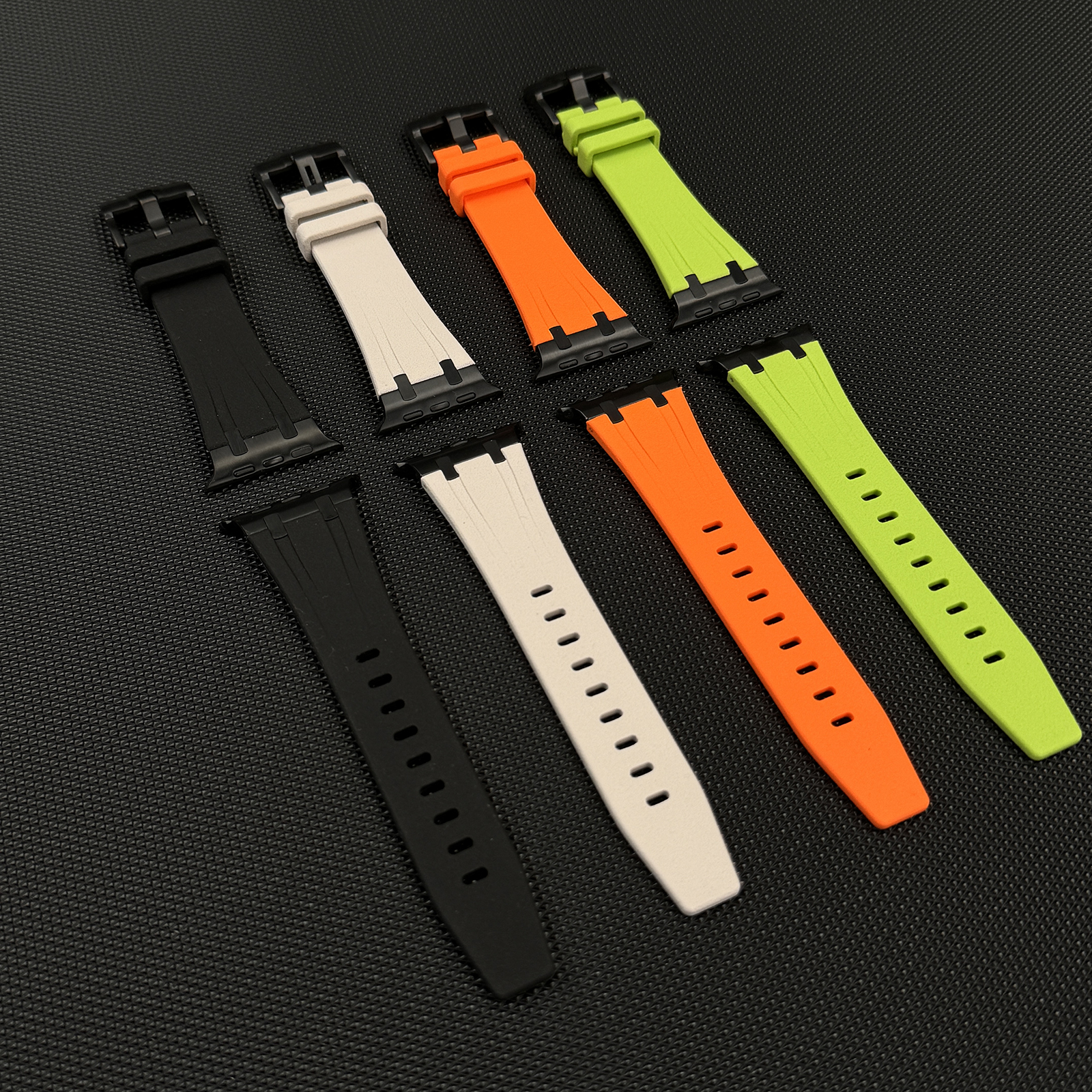 Dây đeo đồng hồ bằng cao su sử dụng thiết kế Vân Đá giúp dây đeo vừa vặn với cổ tay hơn và nhanh chóng. Tháo lắp dễ dàng lắp vào và tháo ra mà không cần bất kỳ dụng cụ nào.