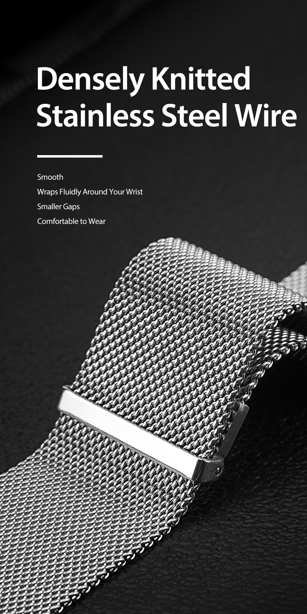Được dệt trên máy chuyên dụng, dây đeo Milanese bằng thép không gỉ có khóa nam châm có thể điều chỉnh này sẽ giữ cho đồng hồ của bạn được đeo an toàn và đảm bảo vừa vặn hoàn hảo. Nó thuận tiện cho việc sử dụng hàng ngày, dễ dàng cài đặt và gỡ bỏ, phù hợp với hầu hết các kích cỡ cổ tay.