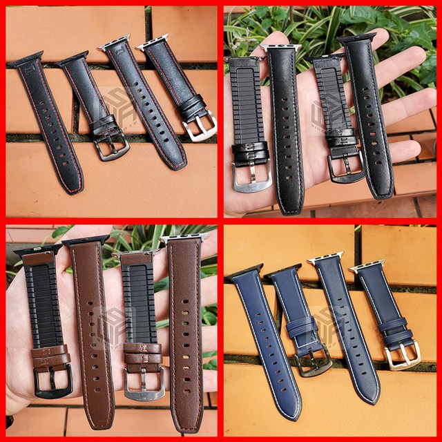 Giới thiệu [Dây hybrid da thật lót silicon] Dây da Apple Watch series 1/2/3/4/5 phong cách Porches Design, SWASTORE