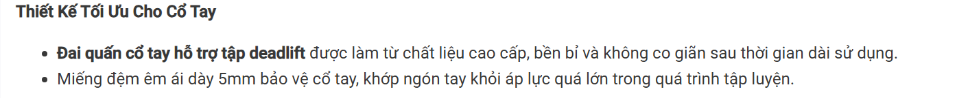 Wrist Wraps (hay còn gọi là dây quấn cổ tay) là phụ kiện không thể thiếu đối với những người tập gym, đặc biệt trong các bài tập nặng như deadlift, kéo tạ, tập lưng và xô. Công dụng chính của Wrist Wraps là giảm áp lực lên cổ tay, tăng độ ổn định, từ đó giúp bạn duy trì phong độ tập luyện, nâng cao hiệu quả và hạn chế chấn thương.