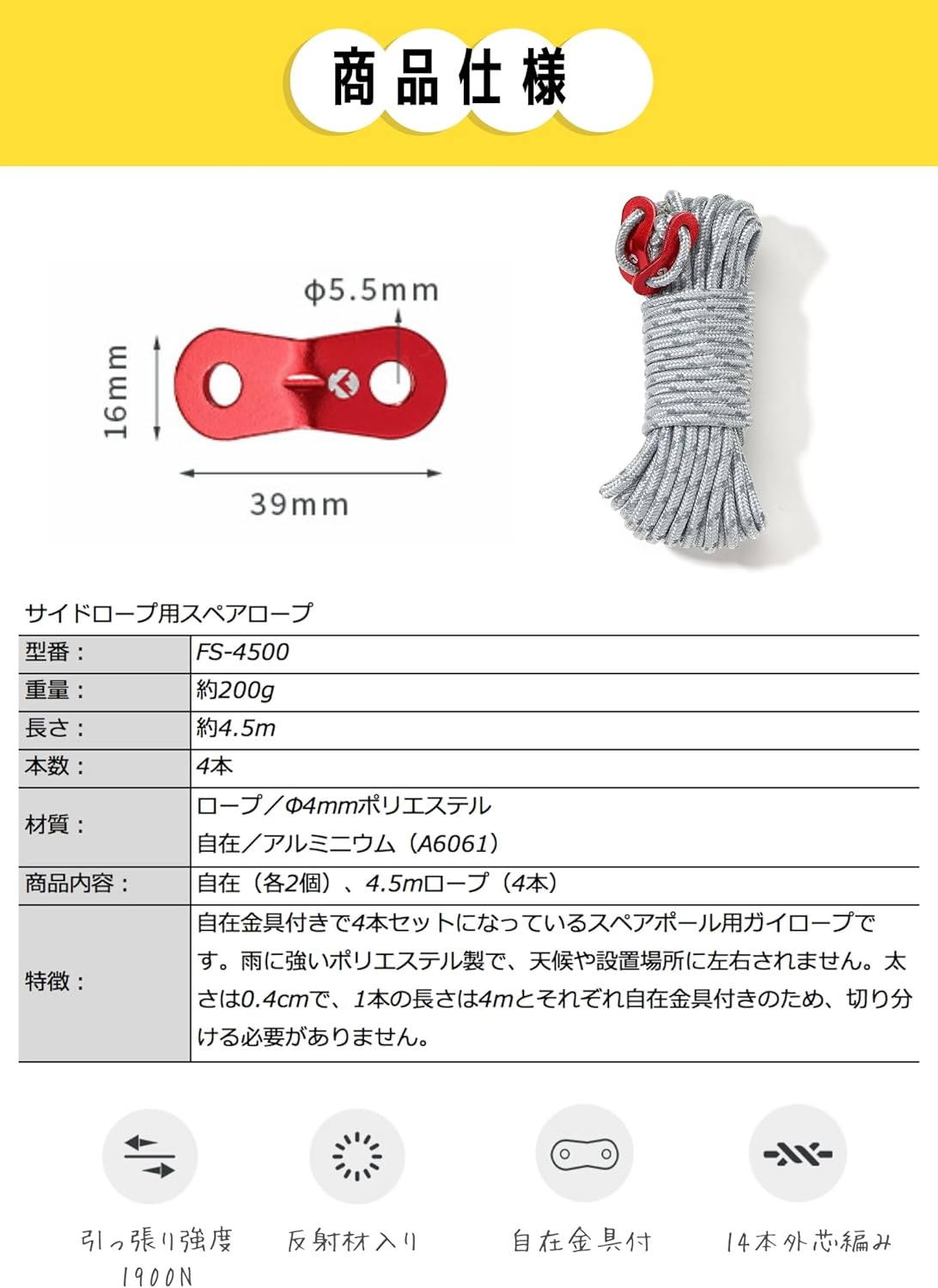 - Bộ sản phẩm bao gồm: 4 sợi dây neo dựng lều dài 4m