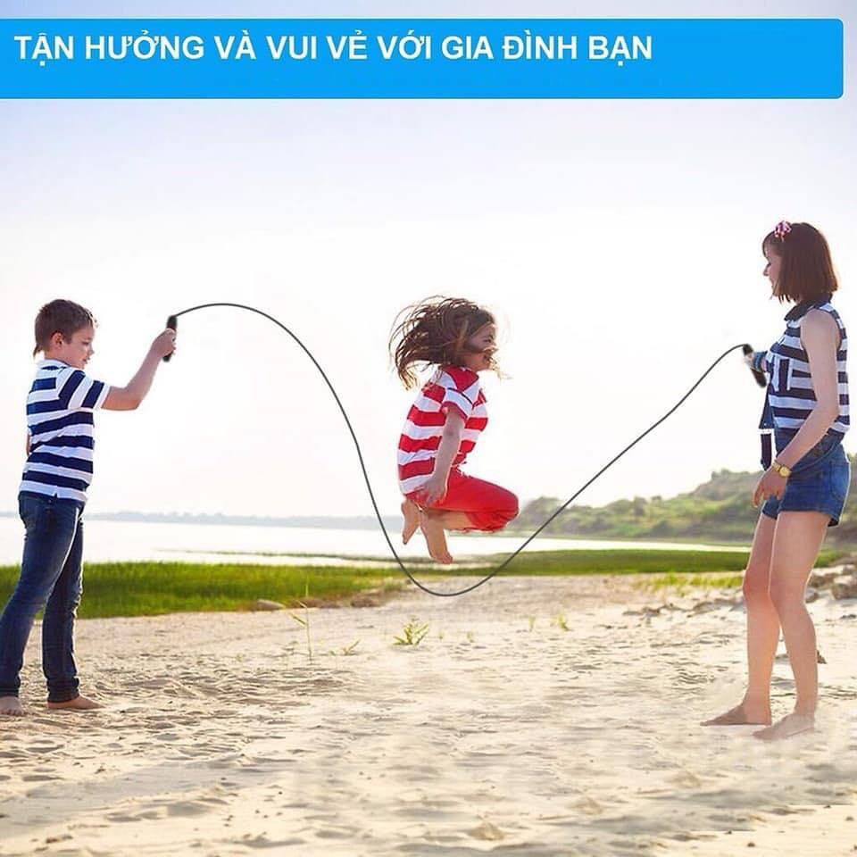 Giới thiệu Sản phẩm Dây nhảy thể dục: - Độ dài vật lý của dây : 3m - Độ dài sử dụng (Sau khi gắn với tay cầm) : 2.7m - Độ dài tay cầm : 16cm - Đường kính dây : 4mm - Trọng lượng : 400 gam - Chất liệu Tay cầm : Tay bọc bên ngoài 2 lớp; Bên trong Nhựa PVC cứng - Dây nhảy có vòng xoay & chốt điều chỉnh độ dài tiện lợi - Màu sắc : Được GIAO MÀU NGẪU NHIÊN) Đặc điểm nổi bật : • Dây nhảy cao cấp là một trong những dụng cụ tập thể dục hữu ích giúp bạn luyện tập thể thao hiệu quả, cải thiện hoạt động của tim, tăng cường thể lực và sự dẻo dai của cơ thể. Ngoài ra luyện tập nhảy dây đều đặn còn làm săn chắc cơ đùi, eo thon, giúp nở ngực, giúp cơ thể cân đối. Sản phẩm phù hợp cho các hoạt động giảm cân, gìn giữ sức khỏe tại gia kết hợp cùng các chế độ ăn uống hợp lý, bạn sẽ có một cơ thể khỏe mạnh, tràn đầy sức sống. • Sản phẩm có thể điều chỉnh được độ dài dây. Sử dụng phù hợp cho nhiều đối tượng với chiều cao vóc người khác nhau. • Tay cầm thoải mái • Sản phẩm được thiết kế an toàn, đạt tiêu chuẩn của nhà sản xuất. Tay cầm là bộ phận tiếp xúc trực tiếp với người tập, được thiết kế thoải mái và dễ cử động khi sử dụng. • Không kén đối tượng sử dụng • Sản phẩm được thiết kế phù hợp với mọi độ tuổi, mọi thành phần, công việc. Có thể sử dụng tại nhà hoặc mang theo để tập luyện tay bất kì lúc nào. • Giải trí trong lúc rảnh rỗi, rèn luyện tay hiệu quả • Sản phẩm giúp rèn luyện và tăng khả năng vận động. Đặc biệt phù hợp để giảm stress, tiêu hao năng lượng tiêu cực. Hotline tư vấn, mua sỉ, lẻ: 0353279999