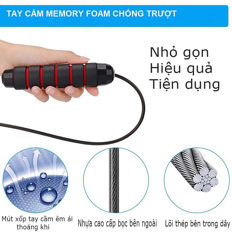 ⚡. THÔNG SỐ CHI TIẾT SẢN PHẨM: * Thương hiệu: OEM * Chất liệu: Cao su mềm + Nhựa + Thép * Khối lượng: 143g-340g * Kích thước: Tay cầm dài 16cm, Dây dài 2.7m * Màu sắc: Đen, Đỏ * Xuất xứ: Trung Quốc * Bảo hành sản phẩm: 03 tháng (bằng mã đơn mua hàng) ---------------------------------------------------------------------------------- ⚡. CÔNG DỤNG * Dây Nhảy, Dây Nhảy Thể Lực Tập Thể Dục Thể Thao Giảm Cân Lõi Thép Cao Cấp 2,7m Nhiều Màu sự lựa chọn tuyệt vời cho bạn khi muốn luyện tập thể thao, vừa nhẹ nhàng thoải mái lại vừa hiệu quả khỏe khoắn. * Thiết kế bền đẹp, * Độ dài vật lý của dây: 3m * Độ dài sử dụng (Sau khi gắn với tay cầm): 2.7m * Đường kính dây: 4mm * Loại dây sợi cáp bình thường - Trọng lượng nhẹ cùng độ dài phù hợp, không tạo sự vướng víu khi tập luyện. - Phần tay cầm của sản phẩm bọc bên ngoài 2 lớp Eva được bọc phủ thêm lớp mút êm ái, tạo cảm giác dễ chịu, không gây cấn tay và đặc biệt thấm mồ hôi và hạn chế được tình trạng trơn trượt khi cầm. - Thiết kế gọn nhẹ, thuận tiện bảo quản, cất giữ cũng như mang theo khi cần. Dây Nhảy, Dây Nhảy Thể Lực Tập Thể Dục Thể Thao Giảm Cân Lõi Thép Cao Cấp 2,7m Nhiều Màu Là bộ dụng cụ thể thao tiện ích, dễ dàng mang theo và sử dụng. Sản phẩm không chỉ thích hợp để bạn sử dụng mà còn là món quà tuyệt vời cho chị em bạn bè yêu thích thể thao của bạn.