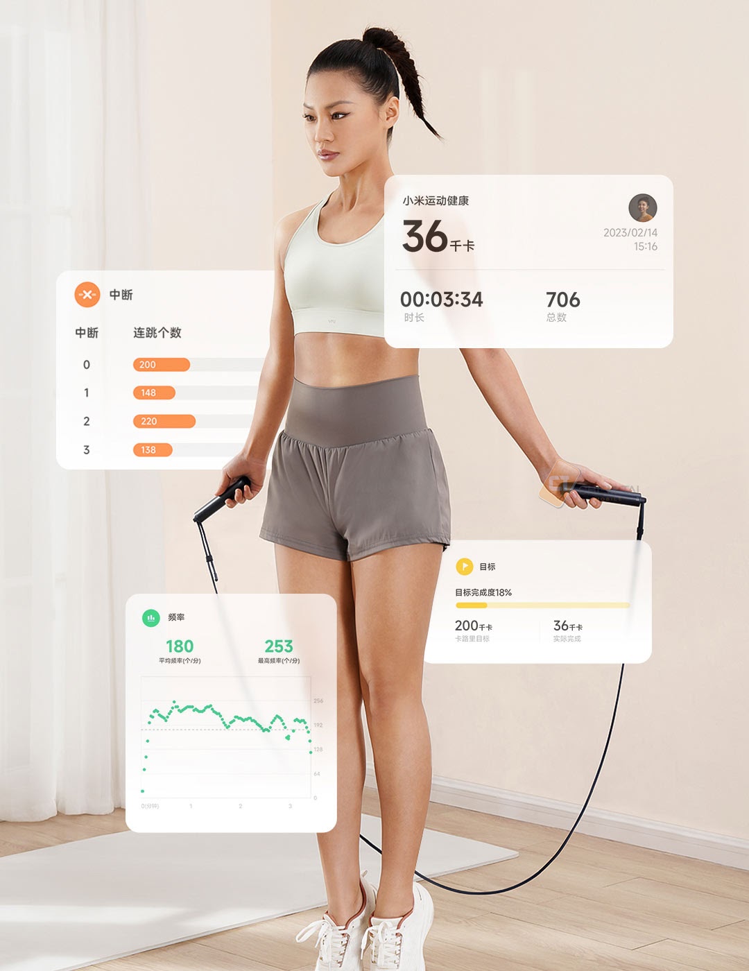 Thiết bị có khả năng ghi lại số nhịp nhảy sau những lần luyện tập cùng với các chế độ như đếm, hẹn giờ, đốt calo. Nâng cao hơn khi chúng ta kết nối thiết bị với ứng dụng Xiaomi Sports Health. Tại đây, người dùng sẽ được cung cấp các giải thích và hướng dẫn chi tiết luyện tập ngay trên ứng dụng. Kèm theo đó là các khóa học phong phú và thú vị được tích hợp sẵn tùy theo sở thích, điều này có thể giúp người dùng nhanh chóng bắt đầu với môn thể thao nhảy dây.